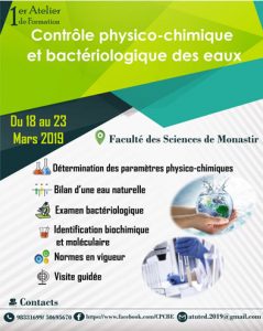 L’Association Tunisienne des Technologies Durables (ATuTeD) co-organise avec la Faculté des Sciences de Monastir son premier atelier de formation en Contrôles Physico-chimiques et Bactériologiques des Eaux.